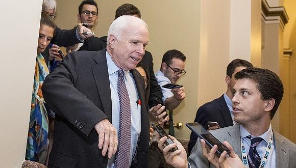 由于未能取得足够的票数,当天美国参议院共和党的“瘦身版”奥巴马医改废除法案被否决。这已经是本周以来该党废除奥巴马医改的第三次投票失败。 据美联社7月28日报道,缅因州的柯林斯(Susan Collins)、阿拉斯加州的穆考斯基(Lisa Murkowski)以及亚利桑那州的麦凯恩(John McCain)三位共和党议员投了反对票,令参议院最后以49票赞成,51票反对的结果否决了法案。 该医保法案修订案是参议院多数党领袖麦康奈尔(Mitch McConnell)提交的,他在投票过后的新闻发布上显得仍未从震惊与失望中缓过神来,称那是令人失望的时刻。 这次失败也意味着特朗普任期第一年的下半年仍然没有一项重大的立法胜利。随后这位美国总统说,上述三名共和党人让美国人民大失所望。 民主党参议员舒默(Chuck Schumer)则说,看到数百万人还能继续享有医保,该党终于松了一口气。 其中,共和党人麦凯恩投出的反对票意味深长。两年前,特朗普在竞选活动中曾嘲讽麦凯恩当年参加越战时被俘的不光彩经历,现如今麦凯恩则给了他重重一击。 身为参议院主席的副总统彭斯在投票之前就花了20分钟对这位老同志开展思想工作,但似乎没有起到任何作用。两人交流完毕,麦凯恩居然走向民主党成员之中。 据CNN援引现场人士透露,临近投票前特朗普还给彭斯打电话,让后者转给麦凯恩。但显然没有成功。 整个投票过程一直持续到了凌晨零点。麦凯恩刚接受完手术,对于被拖延到午夜的投票程序非常不满。 他在过后的发布会中说,“我反复说过,奥巴马医保的失败之处在于是在当时民主党人全权掌管国会时强行通过的,共和党人没有参与。我们必须回到正确的立法轨道上来,并且把法案拿到委员会那里,举行听证,听取各州长官的建议,最终拿出一份对全体美国人来说都承担起的医保。我们必须做这些我们的公民期望我们的勤奋工作。” 奥巴马七年前推出了《平价医改法案》,而国会共和党人为废除“奥巴马医改”也努力了七年。撤销并取代奥巴马医改也一直是特朗普竞选活动中的最重要组成部分。 自2009年奥巴马医改在当时由民主党人控制的国会中通过至今,为废弃奥巴马医改,共和党人推动了不下63次投票,但都没能成功。 所谓“瘦身版”奥巴马医改废除法案,旨在废除奥巴马医保中的部分条款。据此前的国会预算委员会的估算,一旦该法案获得通过,将会有1600万美国人在2026年之前失去医疗保险,且保费将在第一年内飙升20%。 努力屡屡受挫,共和党人想要推翻奥巴马医保的前景已经非常暗淡。 而现实是,参议院共和党人内部已经不存在商量的余地。他们要么妥协与民主党人合作,要么接受现实跳过这个话题,将焦点转移到税改或者基础设施建设支出上。