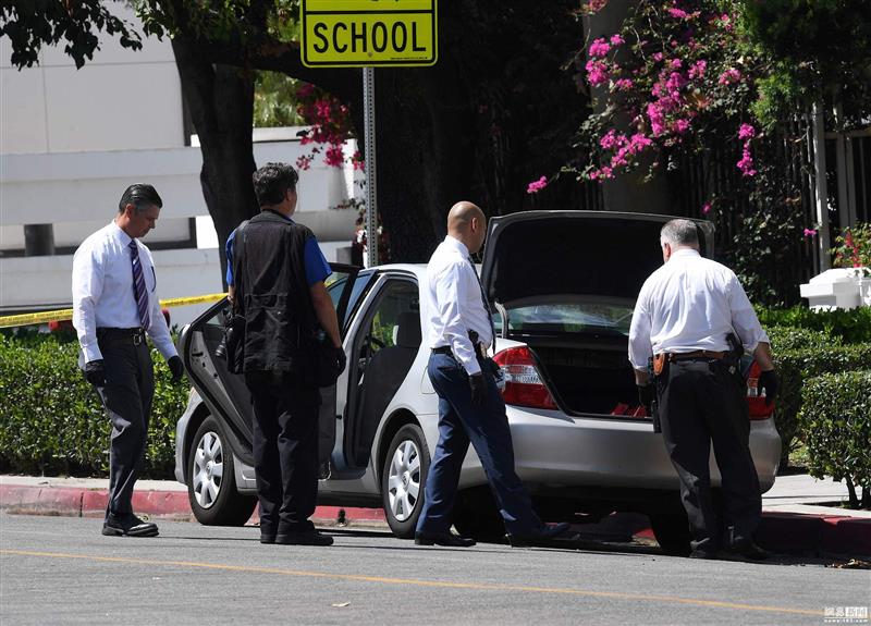 当地时间2017年8月1日,美国洛杉矶,当日早上一名亚裔男子在中国驻洛杉矶总领馆门前向总领馆的建筑和门牌开枪射击,枪手随后开枪自杀身亡。枪击案没有造成除枪手以外的其他人员伤亡。目前洛杉矶警方还在对事件作进一步的调查。枪手的身份和作案动机还在调查中。