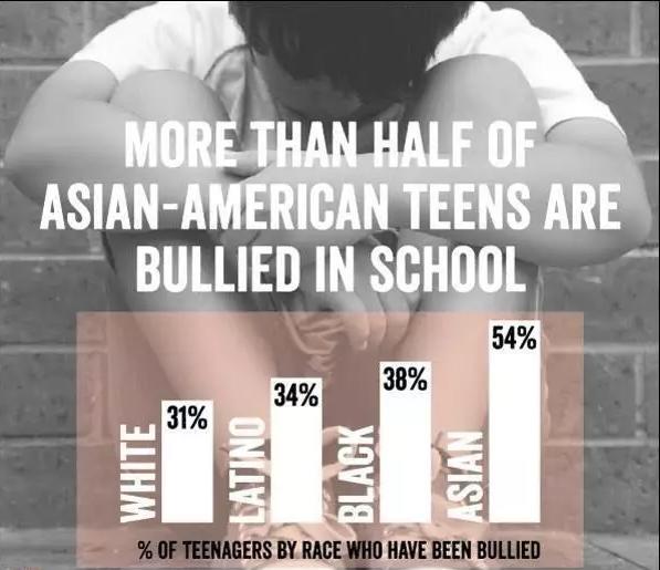 我看到一项2009年美国司法部和教育部进行的调查数据,亚裔青少年遭受网络霸凌的比例是其他族裔同龄人的3倍,在实际生活中遭受霸凌的比例也要高出20%。在2012年一项纽约市的调查中,竟然有一半的亚裔学生表示曾遭受霸凌,远高于2009年时的27%,也远高于同龄的白人、非裔和西裔学生。