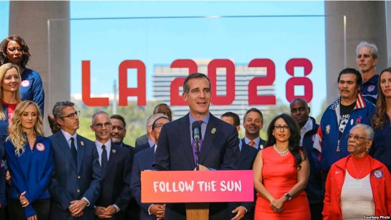 洛杉矶市长(演讲者)、市议员和运动员欢迎2028奥运 洛杉矶 — 洛杉矶市议会星期五无异议表决通过新的奥运谅解备忘录和主办城市合同,尽管成本预算和潜在的财务负担都尚未定案。 洛杉矶上次举办奥运会是在1984年,市议会星期五在洛杉矶奥运小组委员会开会后立即进行投票,获得全票通过,为奥运会重返洛杉矶跨越了另一道障碍, 先前小组也一致表决通过协议。 许多知名的洛杉矶地方政要和奥运会的支持者都在星期五的申奥小组委员会和市议会发言表达支持,包括奥林匹克九项金牌得主田径名将刘易斯。他表示,奥运会关系人们的生活,它能凝聚众人,鼓舞孩童。曾获得四面游泳金牌的珍妮特·埃文斯则表示,她观看1984年的洛杉矶奥运,激励她努力成为奥林匹克选手。 委员会正式签署协议后,市府承诺致力于2028年的奥运会。 洛杉矶市政府上周曾公开一份和国际奥委会领导人的协议,同意将2024年奥运让给巴黎承办,并为洛杉矶主办2028年奥运开通道路。 洛杉矶市长埃里克·贾西提表示,我们谈判让奥运会重回美国,是毕生难逢的机会,为子孙创造新的奥运传承,也为洛杉矶市所有社区带来运动和健身的项目。 贾西提在声明中指出,今天市议会无异议通过,清楚表明对我们的2028年财政负责计划的信心,更证明洛杉矶人对奥运重返洛杉矶的热情。 这份合同纲要性的列举了洛杉矶举办奥运的财务责任,尽管计划中的2028奥运的预算尚未完成。 因为洛杉矶同意晚四年举办奥运,将获得奥委会在财务上的显著让步。根据2028奥运会主办城市合同,筹划期延长,国际奥委会将预支一亿八千万美元给洛杉矶组委会,并用来资助奥运举办前几年的青年体育活动。 奥委会还同意豁免五千万美元的费用,并将奥运广播和赞助的收入提出最多20亿美元用于奥运会,举办2024年奥运的巴黎只得到17亿美元。国际奥委会还同意将来自奥运会的利润给予洛杉矶。 市议会的分析师建议市议员批准合同和谅解备忘录,但也强调2028年奥运的修订预算可能要数月才能完成。合同的最后截止日期为八月十八日。 洛杉矶申奥委员会当初争取主办2024奥运会,提出一个53亿美元的平衡预算,跟最近几次的奥运会运算相比,数字偏低。洛杉矶必须重新估算市府和州府批准用来弥补潜在赤字的财务担保。 加州州长布朗去年九月签署立法,如果洛杉矶取得2024年奥运主办权,而预算超支的话,加州的纳税人必须负担多达两亿五千万美元,洛杉矶市政府则将支付相对数额的配合款。 这些储备费用到2028年显然会增加,市府分析师表示,州政府支援的问题可能要到2018年才能解决,不过州议会的领导人已经表示会支持。 奥运会历来都有预算失控的臭名,不过洛杉矶市政府官员认为他们的计划不会超支,因为洛杉矶将依靠本地许多既有的体育馆和体育场,包括洛杉矶纪念体育场和斯台普斯体育馆。加州州政府的分析师曾做出结论说,2024奥运计划的风险相当低,因为市府排除了主要的新建项目。 而外界也预期2028奥运计划大体上会保持原样,不会兴建任何新的永久性场地。 美国奥林匹克委员会董事会必须批准这个协议。国际奥委会预订九月十三日在秘鲁的利马进行投票,正式公布奥运会的主办城市归属。 星期五在新闻发布会举行时,大约有十多名抗议者在外围示威,他们高呼“要住房,不要奥运”,他们要求市政府在平价住房项目投资,而不是在奥运上。不过洛杉矶奥运的53亿美元预算并不包括任何公款,市政府只有在奥运超出预算的情况下,才需支付。 洛杉矶的罗耀拉·马里蒙特大学最近做的民意调查显示,百分之83的洛杉矶居民支持申办2028年奥运。