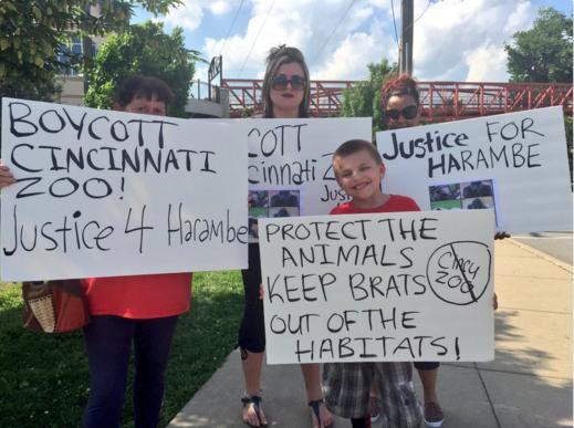 Protestors outside Cincinnati Zoo, demanding action for harambe
