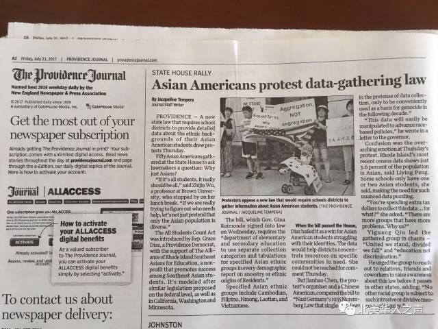 Today is a very special day. Thank you for being here. You may not realize it, this is probably the first ever Chinese American protest in RhodeIsland’s history. Today is special, because, we Chinese Americans, are no longer the silent minority – Rhode Island’s Chinese Americans have stood up! We will fight for fair and equal treatment for ourselves, and for our future generations! You all should be very proud of yourselves for being here. Thank you! Why are we here? We are here to askour governor and state legislators to repeal or change the “All Students CountAct.”