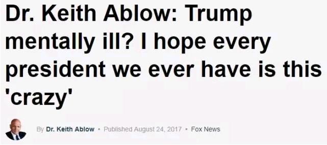 大选前有句话,说希拉里是骗子,川普是疯子,宁可选个骗子上去,也不能选一个能毁灭地球的疯子。这是民主党的说法,因为他们挡不住希拉里一个又一个丑闻,只好换个角度,说川普其实更差。 这招儿显然没用,这个疯子如今在白宫里发号施令,骗子只能在白房子里写书。 有意思的是,川普当政七个月之后,主流媒体开始老调重弹,又在说川普精神错乱,因此不适合当总统。 大概是因为重新计票无功而返,川普通俄始终没有证据,说他种族歧视自己都不信,弹劾更是遥遥无期,所以只能说他疯了。反正说别人有病不需要证明,可以任意发挥。 主流媒体和民主党政客关心的是怎么把川普搞下去,至少牵扯他一大半精力,至于经济,减税,医保,反恐,打击犯罪这些事,都是次要问题。总统召开新闻发布会,讨论基础建设,全体记者疯狂发问,全部是围绕所谓的"种族冲突",最后川普说你们到底有没有基建方面的问题?交通部长赵小兰全程在场,一句话也插不上,因为媒体根本不关心基建。