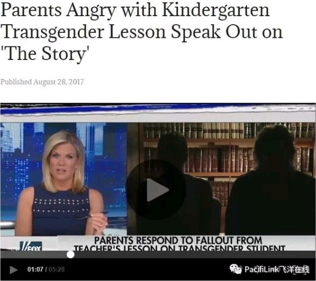 视频:http://nation.foxnews.com/2017/08/28/parents-angry-kindergarten-transgender-lesson-speak-out-story 媒体曝光之后学校辩解说根本没有"训话",也没有"惩罚"。但是小孩的妈妈说,你把一个一年级小孩从课堂里叫出来,叫到校长办公室谈话,还用怎么惩罚?