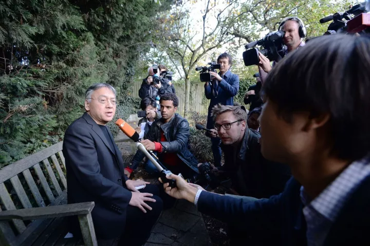 ▲日裔英国作家石黑一雄(Kazuo Ishiguro)获得了2017年诺贝尔文学奖。图据诺贝尔官网 在之前博彩公司开出的赔率榜单中,并未出现过石黑一雄的名字,在石黑一雄获奖时,不少人感叹诺奖再次“爆冷”。不过,在世界文坛上,石黑一雄早已有一席之地,其作品有《远山淡影》《长日留痕》《无可慰藉》《千万别丢下我》《浮世画家》等。石黑一雄的代表作《无可慰藉》《别让我走》《长日将尽》《被埋葬的巨人》也已由上海译文出版社出版。 红星新闻第一时间通过英国特约记者采访了刚获得诺奖的石黑一雄。石黑一雄目前住在英国伦敦,当BBC联系他获得诺奖时,他甚至一开始以为是玩笑,因为评委会一直没有联系过他,“这是一个巨大的荣誉,主要是因为这意味着我追随了最伟大的作家的脚步,所以这是一个了不起的赞扬。” 直到记者打电话才相信获奖 “一部分感觉自己像一个冒名顶替者” 石黑一雄(Kazuo Ishiguro)目前住在伦敦Golders Green,在接受红星新闻特约记者采访时,虽然周围一片混乱,不断涌进采访的记者,但石黑一雄依然平静,像他的语言文字一样淡然。他笑着说,“这是绝对的混乱。我的经纪人打电话说,宣布我是诺贝尔奖得主,但是有这么多假的消息,这些日子很难知道什么能相信,所以我没有真正相信,直到记者开始打电话以及来到我家门外。怎么有那么多记者知道我的家?” 石黑一雄说,自己很荣幸获得诺奖,他希望诺贝尔奖成为一种永远的力量,“这个世界正处于一个非常不确定的时刻,我希望所有的诺贝尔奖都能像现在这样,成为世界上一股积极力量。”他补充说,“如果我今年能在某种形式上成为某种潮流的一部分,在一个非常不确定的时间里营造某种积极的氛围,我将深受感动。” 石黑一雄也分享了自己的另一种心情,“我的一部分感觉就像一个冒名顶替者,感觉很糟糕。村上春树、萨尔曼·拉什迪、玛格丽特·阿特伍德、麦克卡西、麦卡锡,都马上进入了我脑海,我只是想‘哇’。我太年轻了,不能赢得这样的东西。但是我突然意识到我已经62岁,所以我是在获奖作家的平均年龄。”
