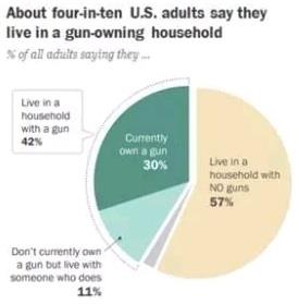 比如说1903年的美国无声西部电影《火车大劫案》,该片只有12分钟,一般认为是世界上最早的西部片。 几十年前,美国很多中学还有射击课程。 纵观历史,枪支文化已经深入民众骨髓,是美国文化不可分割的一部分。 随着社会的发展,人口结构的变化(越来越多的移民),生存环境的变化,美国民众对枪支的看法也越来越分裂。以下图表来自 Gallup and Pew 研究中心。 1. 42%的美国成人家里有枪。三分之二的拥枪族有多把枪支。