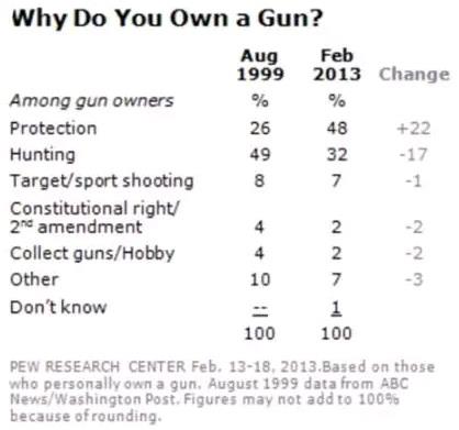 为什么要拥枪这个问题,从1999到2013年发生了很大变化。