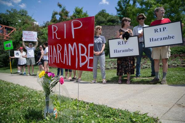 那是一只十几岁的大猩猩,名叫哈兰贝(Hrambe)。他被开枪打死一事引发了网上的批评声、守夜活动、动物权益活动人士的投诉和指责小男孩的母亲的请愿书。甚至在稳获共和党总统候选人提名的唐纳德·特朗普(Donald Trump)周二召开的新闻发布会上,也有人提及此事。