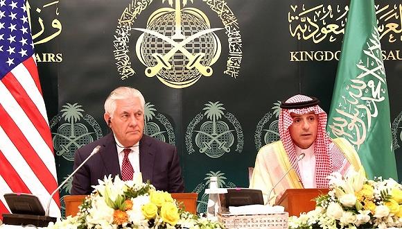 2017年10月22日,沙特阿拉伯利雅得,美国国务卿蒂勒森、沙特阿拉伯外交大臣朱拜尔出席新闻发布会。 美国国务卿蒂勒森最近连续访问了四个穆斯林国家,先是于10月22日访问沙特阿拉伯和卡塔尔,兜售美国孤立伊朗的外交政策,随后又在23日意外秘密地到达战火纷乱的阿富汗和伊拉克,在传达特朗普政府新政策的同时敲打巴基斯坦。 孤立伊朗 在沙特与伊拉克,蒂勒森极力撮合这两国联手对付伊朗,并呼吁尽快解决卡塔尔断交危机,以免让伊朗“渔翁得利”。 据美国哥伦比亚广播公司(CBS)网站报道,蒂勒森在沙特首都利雅得参加由沙特国王萨勒曼和伊拉克总理阿巴迪共同主持的沙伊两国协调委员会首次会议时表示,在两国间建立关系有助于帮助伊拉克从与“伊斯兰国”(ISIS)等极端组织的战争创伤下尽快恢复过来,同时减少外国势力的干预。 “我们相信这在某种程度上会对抗伊朗在伊拉克毫无成果的影响力。”他在会后的新闻发布会上说。此外,他还谴责了伊朗的“恶意行径”,并敦促该地区以及欧洲等其他地区与美国政府一道中断与伊朗革命卫队的商业往来。 新华社报道说,在地缘上处于桥头堡位置的伊拉克历来是逊尼派与什叶派争取的对象。2003年伊拉克战争后,长期遭排挤的伊拉克什叶派登上政治舞台,与同属什叶派的伊朗越走越近,让美国以及包括沙特在内的逊尼派海湾君主国颇为警惕。 CBS报道称,蒂勒森此次访问说明,美国政府试图让沙特和伊拉克组成一个新的轴心,来对抗伊朗在中东地区日益增长的影响力。美联社报道说,三国还讨论了美国退出伊朗核问题全面协议的可能性以及新出台的制裁措施。 当晚,在离开利雅得飞抵卡塔尔首都多哈后,他提醒今年6月与卡塔尔断交的国家说,阿拉伯国家内部生乱只会让伊朗得利。蒂勒森试图推动对立两方的对话、帮助科威特进行斡旋,但他也承认,卡塔尔断交危机眼下出现突破的可能性很小,“有关方面没有准备好对话,我们不能强迫他们对话”。 拉拢阿富汗敲打巴基斯坦 结束对沙特和卡塔尔的访问后,蒂勒森23日秘密突访了阿富汗和伊拉克。《华盛顿邮报》称,出于安全问题考虑,这位国务卿周一的行程极为机密,其中对阿富汗尤其如此,相关消息在蒂勒森离开该国后才透露出来。 在这波突访中,蒂勒森分别会见了阿富汗总统加尼和伊拉克总理阿巴迪。报道称,蒂勒森此行主要是为了表达美国对阿富汗的支持,并在塔利班问题上敲打巴基斯坦,这也是他今年就任美国国务卿以来首次访问阿富汗。 蒂勒森与加尼讨论了铲除腐败、确保2018年议会选举顺利进行,以及加强该国安全形势等问题。“我认为阿富汗是非常重要的一站……是总统最近宣布的政策和战略的一部分,”蒂勒森说。作为特朗普政府对阿富汗政策的一部分,美国将在阿富汗增兵4000。 根据美国驻阿富汗大使馆当天发布的声明,蒂勒森在会谈中说,美国在南亚地区采取新战略表明美国愿意和阿政府以及地区其他国家一道,为应对恐怖主义威胁、实现阿富汗的和平而努力。 蒂勒森同时传达了美国对巴基斯坦的强硬态度。今年初,特朗普政府威胁要制裁巴基斯坦,理由是后者在与阿富汗接壤的边境地区为塔利班等恐怖分子提供“安全港湾”,巴基斯坦否认这一指控。 周一,巴基斯坦媒体援引高级官员的话说,会“尽可能”与美国等国密切合作打击边境恐怖分子,但坚称美国军队必须远离巴基斯坦。 而在巴格达,蒂勒森则表示美国政府对伊拉克中央政府与库尔德地方政府间的纷争感到“担忧、有些难过”。他鼓励双方通过对话解决分歧。 “我认为双方都应该遵守一个伊拉克的原则,遵守伊拉克宪法,我认为所有分歧都会解决,所有人的权利都将得到尊重,伊拉克将拥有一个非常安全和繁荣的未来。”他说。 不过,双方在伊朗支持的伊拉克民兵武装的问题上产生了分歧。据英国广播公司(BBC)网站报道,蒂勒森曾在22日表示,驻扎在伊拉克的伊朗武装力量应该解散、“打道回府”。不过阿巴迪在23日否认该武装是伊朗的傀儡,并称这些武装人员是 “伊拉克和该地区的希望”。 阿巴迪在声明中表示:“伊拉克什叶派民兵组织‘人民动员’是由打击恐怖主义的伊拉克人组成,为国家做出了很大牺牲并且击败了ISIS。” 接下来,蒂勒森还将前往巴基斯坦以及印度和瑞士进行访问。
