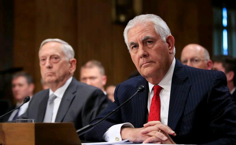 国防部长马蒂斯和国务卿蒂勒森星期一在国会作证