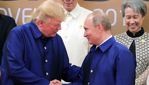 2017年11月10日,越南岘港,普京和特朗普在越南举行的APEC峰会上互致问候并握手。 尽管“通俄门”风波尚未平息,美俄关系仍处在冷战以来的低点,美国总统特朗普和俄罗斯总统普京依然于周五(11月10日)在越南举行的亚太经合组织(APEC)峰会上微笑地握了手。 但白宫发布申明称,双方不会举行正式会晤。特朗普与普京的上一次会晤还是在7月份的G20汉堡峰会期间。 路透社报道称,在峰会正式开始前的集体照拍摄活动中,特朗普和普京身穿主办国提供的传统蓝色上衣,微笑地问候了对方并站在一起完成了拍照。随后,两人分开各自坐到了桌旁的不同位置。 白宫此前发布声明,因行程冲突,特朗普和普京不会举行正式会晤,但有可能会遇到对方。 白宫新闻秘书桑德斯(Sarah Sanders)说:“现在,他们将出现在同一个场合。他们是否会遇到对方然后互道一声你好?这肯定是可能的,而且很有可能。至于事先计划好的正式会晤,现在的日程上没有,我们预计也不会有。” 但桑德斯的声明和俄罗斯方面的表态大相径庭。 克里姆林宫助理乌沙科夫(Yury Ushakov)此前对俄罗斯新闻机构称,双方领导人将举行会谈。普京新闻秘书佩斯科夫(Dmitry Peskov)也表示,正在讨论会谈的可能性。 据俄罗斯卫星通讯社报道,佩斯科夫称,对于两国领导人是否会晤的问题,美方发出了自相矛盾的信号。他还指出,礼宾部门在继续讨论普京和特朗普在APEC峰会期间举行实质性会晤的可能性,但两位领导人无论如何都会有交流。 特朗普上周在接受美国媒体采访时曾说,可能会在APEC会议期间与普京会晤,商谈叙利亚和乌克兰的问题。 美国国务卿蒂勒森周五在前往岘港的途中表示,他看到了俄罗斯的报道,但称尚未就任何事达成一致。 蒂勒森指出,美国希望能在一系列的议题上取得进展,但如果无法有所收获,现在举行会谈就没有太多意义。 APEC峰会国家领导人的主要会议于周六在越南旅游城市岘港举行。这是特朗普12天亚洲之旅的第四站。 目前美俄关系正处在冷战以来最低水平。今年9月,在美国国会通过对俄制裁法案后,俄总统普京宣布驱逐755名外交官和技术人员,并查封两座美国驻俄建筑。 随后,美国要求俄关闭驻旧金山领事馆以及在华盛顿和纽约的另两座外事建筑,作为对俄罗斯上述行为的回应。 不过一直以来,两国领导人似乎都有意改善这一局面。 特朗普在“被迫”签订对俄制裁法案时仍表示希望改善与俄关系,“希望两国能在全球重大问题上合作,希望(有一天)这些制裁没必要再存在。”而对于特朗普签署法案,普京本人也并没有发言声讨,而是由梅德韦杰夫来谴责的。 不过眼下在美国国内,前联邦调查局(FBI)局长穆勒(Robert S. Mueller)领导的“通俄”特别调查正在全面升级,任何涉俄事宜也都随之变得敏感起来。 FBI已经提起“通俄”调查中的首个刑事诉讼,特朗普前竞选主席马纳福特及其长期商业伙伴盖茨被控12项罪名。穆勒仍在顺藤摸瓜,可能会有更多相关人士被拉下马。 而从此次白宫的表态来看,两国之间的僵局或许仍将持续。