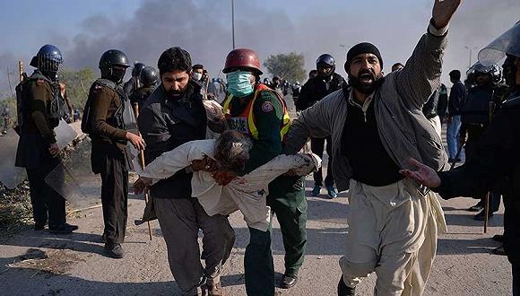11月25日,巴基斯坦,强硬伊斯兰教派Tehreek-e-Labaik成员在与警方冲突中受伤被带走。巴基斯坦当日动用军力,驱逐“反亵渎”抗议者。 经历了上周六(25日)导致数百人伤亡的暴力冲突后,巴基斯坦政府与抗议者在今天达成了协议,被指控犯下“亵渎罪”的联邦司法部长哈米德( Zahid Hamid)离职,换取“反亵渎”(anti-blasphemy )组织Tehreek-e-Labaik结束对主要交通干道的占领、取消计划中的全国抗议活动。 这场持续了数周、导致数百人伤亡的冲突以政府让步而结束,凸显了该国强硬伊斯兰教派不断崛起的政治影响力。 政府让步 据巴基斯坦GEO电台报道,在联邦法律部长哈米德自愿下台后,政府与此次抗议的领导者、“反亵渎”组织Tehreek-e-Labbaik Ya Rasoolullah达成了协议。该组织的领导人里兹维(Khadim Hussain Rizvi)随后宣布达成了预计目标,结束了从11月8日开始的静坐抗议,他还表示他们将按照要求在12个小时内撤出。 按照双方协议,政府将在30天内公布对选举法案修改委员会的调查结果。 “反亵渎”组织指责当局删掉了官员宣誓中关于先知穆罕穆德是“最后的先知”一句话,当局很快就纠正了这一错误并声称这是“笔误”,不过抗议者坚称这是针对伊斯兰价值观的一大阴谋。 上周六,巴联邦政府出动军队驱散抗议人群,结果引发了暴力冲突,导致至少7人死亡,另外还有两百多人受伤。政府还一度下令暂停媒体电视节目的实时直播,并封锁了Facebook、Youtube和Twitter等社交网站。 BBC报道称,军方的介入不仅没能驱散抗议者,反而导致数百名新的抗议者出现,迫使安保人员不得不撤退。截至昨日,伊斯兰堡抗议活动仍在持续。 当天,军方将领巴杰瓦(Qamar Javed Bajwa)与总理阿巴西会面时敦促政府采用和平手段解决这一危机。英国《金融时报》援引一名政府官员的话称,“巴杰瓦将军明确表示,动用武力指挥让这个问题更加恶化。” 周日晚间,当局取消了电视禁令。 GEO的报道称,哈米德于昨日提交了离职请求。阿巴西最初没有接受,仍寄望于能与抗议者达成协议。里兹维表示,除非哈米德下台,否则他们不会与政府谈判。 按照最新协议,政府还将成立调查委员会,对政府针对抗议者采取的行动进行调查,并追究相关人员的责任。 强硬伊斯兰崛起 最新流血冲突发生在强硬伊斯兰教派迅速崛起的大背景下。里兹维领导的Tehreek-e-Labaik(字面大意为服务于真主信使)正式成立于2015年,不过该运动源于2010年,当时,一名信奉基督教的农妇因为亵渎罪被判处死刑,时任旁遮普省长塔西尔(Salman Taseer)建议修改严苛的反亵渎法律,结果因此遭到他的一名保镖枪杀。去年,这名保镖被处绞刑,同时成了很多强硬伊斯兰分子的偶像。 在最近两次议会选举中,类似Tehreek-e-Labaik的伊斯兰激进组织表现不俗。其中一次是今年9月的拉合尔议会补选,强硬伊斯兰组织的候选人在这次选举中分别排名第三和第四,极大震撼了巴基斯坦政坛。拉舍尔所在的旁遮普省是前总理谢里夫的老家,该地区的选举也被视为全国大选的风向标。 “为了先知和那些为之付出生命代价的人,我们还要进行长期的斗争,”里兹维在此次选举期间表示。他说他领导的组织已经开始为明年大选做准备。“如果我们赢了,我们将服务于人民,基于伊斯兰正义,努力在这个国家创建伊斯兰的统治。” 上周日,里兹维和其他穆斯林巴雷尔维派的组织领导人活跃在首都大街、广场上等多个地方,发表激动人心的演说宣扬“最后的先知”论调,或者通过扩音器播放宗教歌曲等。 一些分析人士担心,强硬宗教势力的崛起和政府的软弱预示着巴基斯坦政局可能会更加动荡。 “声势日渐壮大的强硬派抗议者和极其脆弱无力的政府,这两者结合起来,形成了一股完美风暴,预示着未来将继续动荡。”伍德罗威尔逊国际研究中心巴基斯坦专家库格曼(Michael Kugelman)这样告诉《华盛顿邮报》。