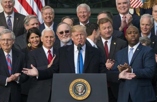 当地时间2017年12月20日,美国华盛顿,美国总统特朗普在白宫就通过税改法案发表讲话。 东方IC 图 随着美国参众两院一致通过税改方案,美国将启动31年来未有的税法改革,再无悬念。 “在你获胜之时,总是有更多乐趣。”当地时间12月20日,美国众议院二次投票通过税改法案后,特朗普与共和党人在白宫庆祝胜利。他在致辞中说:“我们正在让美国再度伟大”。 特朗普同时宣布了美国三大电信运营商之一AT&T的10亿美元投资计划,并归功于于税改通过。但政府本周面临因预算案而停摆的危险,特朗普尚未明确正式签署税改法案的时间。 今年4月,特朗普用一纸不满250个词的大纲启动税改。8个月后,国会通过了这份1000余页的税改法案。 在立法初期,特朗普曾经宣称,他的税改方案建立在4项原则之上:首先,必须让税法简单、公正。第二,对中产家庭进行大规模的减税。第三,对企业减税,以刺激经济增长并增加就业。第四,带回企业留存在海外的万亿美元收入,将这些利润投资在美国。 这些承诺最终没有一一兑现。直到众议院二次投票通过税改前的最后一刻,民主党人都在指责特朗普税改方案“劫贫济富”,让中产家庭为减税买单,并实际上鼓励企业把就业送往海外。 税改最终方案的核心是对企业永久减税,对个人短期减税,未来10年新增1.46万亿美元赤字。企业和富人预计是税改最大赢家。 特朗普税改也并不是美国史上力度最大的减税。据美国财政部计算,1981年,前总统里根的减税规模约为当时美国GDP的2.9%,奥巴马在2013年、2010年两次延续小布什的减税政策,规模分别为当时美国GDP的1.8%和1.3%。 以此计算,特朗普税改的减税规模约为美国GDP的1%,唯有对企业减税的力度史上罕见。 一图读懂特朗普税改 企业税负降至全球平均值下 特朗普税改对企业最为慷慨,最初计划将企业税下调至15%,但已有的20万亿美元联邦赤字不堪重负。 随着新税法的实施,美国企业税将大幅降低,从全球较高的水平,降至平均税率之下。2017年,经济合作与发展组织(经合组织)成员国的平均税率为24.07%。毕马威所统计全球平均企业税率则为24.25%。而美国的新法定企业税率为21%,在废除替代性最低税,纳入多种抵扣之后,实际税负有望低于21%。 对中产家庭却并不“慷慨” 在对个人减税方面,特朗普税改虽然下调了个人所得税率,将标准抵扣额度接近翻倍,提高儿童税收抵扣,但这些措施力度有限,并且将在2025年失效。 另一方面,为了平衡税改带来的财政赤字,税改方案削减了各州和本地的税收抵扣,房屋抵押贷款利息抵扣等税收优惠,却近乎免除了主要针对富人的房产遗产税。 据智库税收政策中心(Tax Policy Center)预测,2018年,税改会使中等收入家庭平均获得900美元的减税。年收入在73.28万美元以上,最富有的1%人群,能获得高达51000美元的减税。税改第一年,这最富有的1%将获得税改20.5%的红利。 如果2025年减税优惠政策得不到延续,据税务联合委员会(Joint Committee on Taxation)测算,2026年个人所得税可能一共上涨1000亿美元。不少低收入纳税人会发现,自己需要缴纳更多的税。 跨国企业的海外收入去留 美国一直实行“全球征税”,海外收入也必须缴纳35%的企业税。但企业只有在将利润带回国内之时,才需要缴纳这一部分税收。因此据高盛估计,美国企业在海外留存了3.1万亿美元的收入。 特朗普税改则对这一体制做出了根本改变,对于此前留存海外的收入,如若带回美国,对现金类流动性较强的资产征税15.5%,对流动性较弱的固定资产征税8%。 在未来,则推行“属地税制”,即美国公司持股10%以上的海外公司,其利润以股息形式汇回美国母公司时将免征所得税,同时辅以措施防止企业滥用避税。 在这些跨国企业中,科技公司比如苹果、微软,思科、谷歌的母公司Alphabet、甲骨文,是海外收入留存最多的5家公司。此外还有美国的生物医药类企业、通用电气、可口可乐和百事可乐等跨国企业。 这些跨国公司将受益于税改,有更强的全球竞争力。他们也将决定,特朗普能否如愿带回企业的万亿海外利润。 “简单与公正” 特朗普也在税改法案中“夹带私货”,比如废除奥巴马医改强制每个人购买医疗保险的规定。不再为约1300万人发放补助,筹集约3000亿美元资金,用于支持税改的其他措施。 医改立法是特朗普执政后的第一个立法,然而在参议院遭遇了数次投票失败,党内倒戈。此次借由税改立法,特朗普动摇了奥巴马医改的核心之一。 此外,对于阿拉斯加东北部的北极国家野生动物保护区(ANWR),税改法案部分解除了当地的油气开采禁令。
