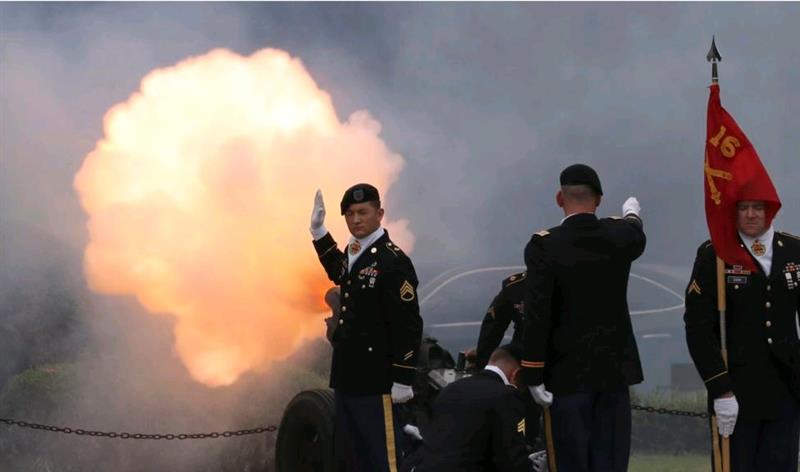 在韩国首尔的美军基地举行换将仪式,韩国-美国联军副司令换人,鸣放礼炮。( 2017年8月11日) 法国公司最近公布的一份调查发现,约有半数的美国人预计美国与朝鲜之间必有一战,同时也有半数美国人相信中国经济将超过美国。 中国多数人不担心美朝可能开战 总部设在法国巴黎的市场调研公司益普索(Ipsos)2017年11月至12月期间对包括美国和中国在内的五大洲28个国家的18940名受访者的调查发现,47%的美国人认为美国和朝鲜之间会发生战争,33%的美国人认为不会。 调查总结出的一个现象是:与朝鲜半岛距离越远的国家,其国民对美朝开战的预期可能性越高。从全球范围来看,42%的受访者认为会发生美朝战争;与朝鲜半岛距离甚远的拉丁美洲国家,其受访者认为会开战的比例接近或超过半数(哥伦比亚—55%,智利—51%,巴西—50%,阿根廷—49%);而在朝鲜的邻国中国和日本,只有不到三分之一的受访者认为有战争可能(中国—30%,日本—32%),韩国民众中认为会发生战争的比例只有21%。