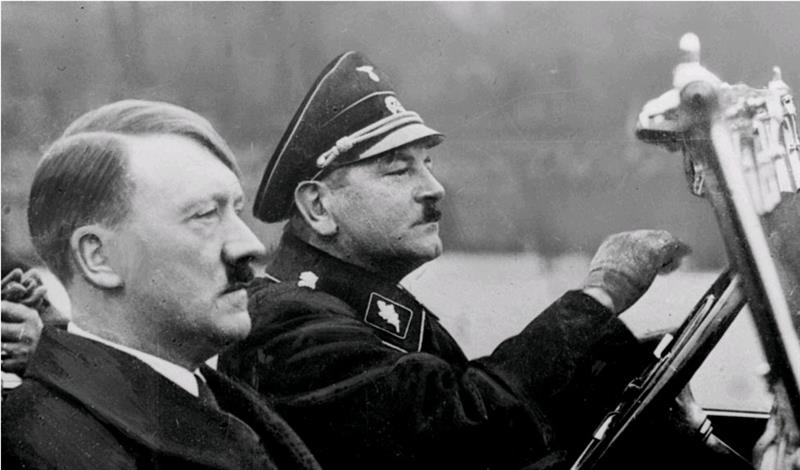 在这张日期不明的照片中,希特勒坐在纳粹党的梅赛德斯-奔驰轿车内,开车者为他的亲信、1936年病死的尤利乌斯·施雷克。(历史资料照片) 一辆罕见的德国纳粹头目希特勒使用过的豪华奔驰座驾本星期将在美国亚利桑那州拍卖。 这款1939年的梅赛德斯-奔驰轿车总共就出产过四辆。