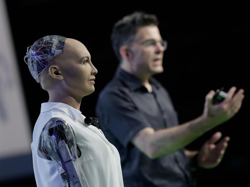 认识一下索非亚(Sophia)吧, 她是汉森机器人科技公司(Hanson Robotics)的大卫·汉森(David Hanson)设计的一款人造智能产品。 汉森说索非亚是他们公司的杰作,但这只是开始。 大卫·汉森说:“我认为,制造出外观及举止与人类相似的社交机器人,可以让我们与机器建立持久和密切的关系。” 机器人索非亚说:“所以,事情变得越来越像某种科幻小说,它会像科幻小说,但更离奇。” 香港大学的工程学教授冯雁(Pascale Fung)说,在发明机器人的众多挑战中,最难的是让机器人学会同时完成多项任务。 她说:“拿机器人与幼儿相比,即使孩子很小,他们也可以同时做好几件事,并从多种感官输入中学习。” 汉森公司以已故女演员奥黛丽·赫本(Audrey Hepburn)为模本制造了12个索菲亚,这位索非亚是其中之一。工程师对她的容貌和算式进行了精密调试,因此,与价值千百亿美元的服务型机器人市场上的同伴相比,她与人类的外观举止更为相似。