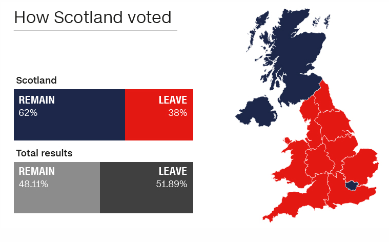 Renewed calls for Scotland to secede Following the seismic vote, Scotland's First Minister Nicola Sturgeon has suggested that the Scottish Parliament could yet veto the decision, the BBCreports, though the Conservative Party has rejected the idea. Sturgeon earlier said that a second independence referendum for Sctoland was very possible should Britain's EU divorce become official.