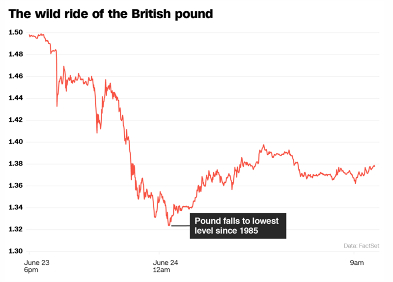 But the shock outcome of the Brexit vote pushed the British pound down to its lowest leve in around three decades, and hit the country's markets hard.