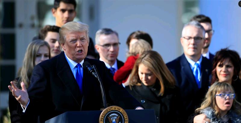 川普总统在白宫玫瑰园对参加年度“为生命游行”的人士发表讲话。(2018年1月19日)