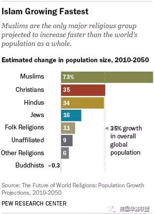 美国白宫前的穆斯林祷告 尽管当前伊斯兰教是全球第二大宗教(位于基督教之后),但伊斯兰教信众是世界主要宗教中人口增长最快的。事实上,如果按当前人口趋势统计计算,未来五十年,穆斯林人口恐将超过基督徒。
