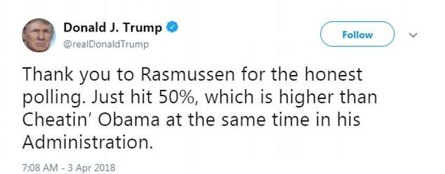 据英国每日邮报网报道,星期一的民调结果是在白宫度过混乱的一星期之后出现的,因为前色情电影明星丹尼尔斯(Stormy Daniels)上星期通过电视节目讲述同川普的婚外情和川普再次使用推特开除退役军人事务部长舒尔金(David Shulkin)。