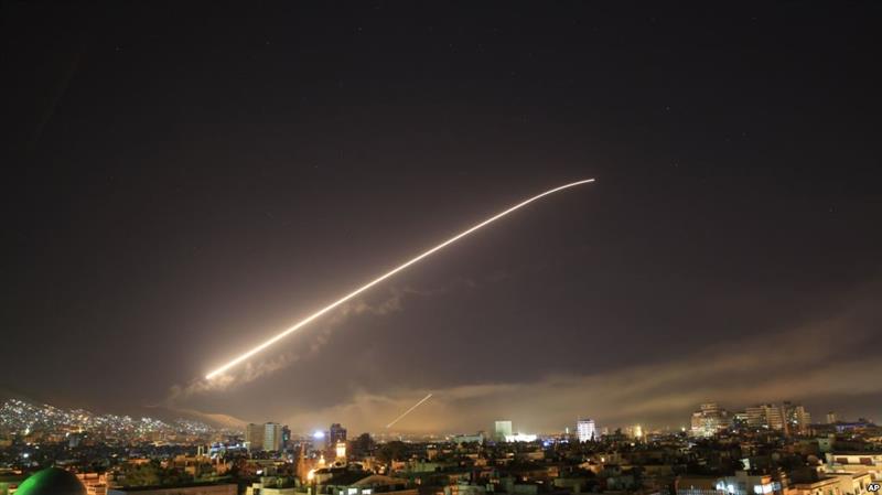 叙利亚防空部队发射导弹回应美英法空袭(美联社)