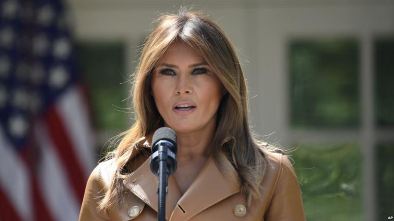 美国第一夫人梅拉尼亚·川普2018年5月7日在白宫玫瑰园宣布“成为最好”项目计划。