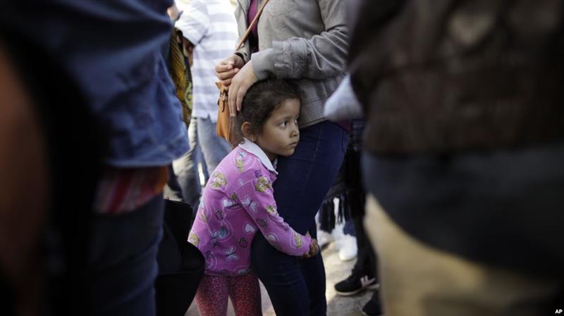 一名墨西哥儿童和家人在边境等待向美国政府提出政治庇护。2018年6月13日。