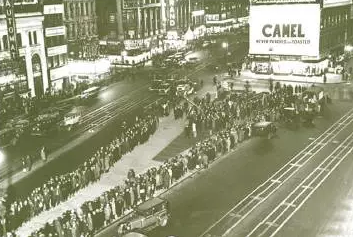 美国大萧条时期,纽约时代广场等着买面包的长队伍