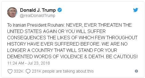 川普在白宫东室和意大利总理孔特举行的联合记者会上被问到他是否愿意和伊朗总统鲁哈尼会面。 川普回应说:“我相信会面。和别人讲话,特别是当你可能面对战争、死亡、饥荒和许多其他事情的时候,这时候你会面。会面没什么不好的。” 川普提到了他最近和朝鲜领导人金正恩和俄罗斯总统普京的一对一讨论,作为他和对美国利益有威胁的领导人直接外交的例子。 他还说:“所以,我当然会和伊朗见面,如果他们也想的话。我不知道他们有没有准备好。他们现在日子不好过。如果他们想的话,我准备好随时与他们会面。” “没有前提条件” 被问到他对会面有没有前提条件的时候,川普回到到:“没有前提条件。如果他们想见面,我就见。” 分析人士不认为川普和鲁哈尼的会面很快会发生,指出川普想见鲁哈尼已经有一段时日了,但并没有成功。 卡内基国际和平基金会地缘经济和战略项目高级研究员杰拉特·布兰克(Jarrett Blanc)说:“我不觉得这会很快发生。” 伊朗的国内政治结构比朝鲜的极权模式要复杂的多,并对和美国的外交不感兴趣,特别是在川普让美国推出被称为《联合全面行动计划》(Joint Comprehensive Plan of Action)的多国协议之后。这份协议限制伊朗的核能力,作为交换,国际社会放松对伊朗的制裁。 其他签约国正和伊朗一起试图拯救这份协议,而美国将开始在8月起重新对伊朗施加制裁。