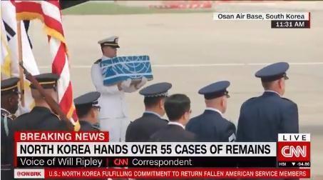 综合媒体消息,14日,美国国防部战俘及失踪军人统计署代表麦凯格在白宫简报会上表示,初步评估显示,朝鲜方面向美军移交的55箱遗骸,符合美国人、以及朝鲜战争时期的特征。 据他称,这些遗骸被装在55个箱子中运抵,但其中可能包括不止55名军人的遗骸。负责分析工作的约翰⋅博德称,每个箱子里都附有一段文本,包括日期和地理位置等信息。在初步评估期间,他发现这些遗骸与美国人、朝鲜战争遗骸“一致”。 他表示,美国实验室对遗骸的化验和识别工作可能需要“数月或者数年”时间。 朝鲜7月27日向美国移交55具美军士兵遗骸。这是自今年6月美朝领导人新加坡会晤以来,朝鲜归还的首批美军士兵遗骸。这批遗骸于8月1日被送往美军夏威夷基地。 1950年至1953年朝鲜战争期间阵亡和失踪美军共计约3.66万人。据五角大楼数据,其中约5000人的遗骸留在朝鲜境内。