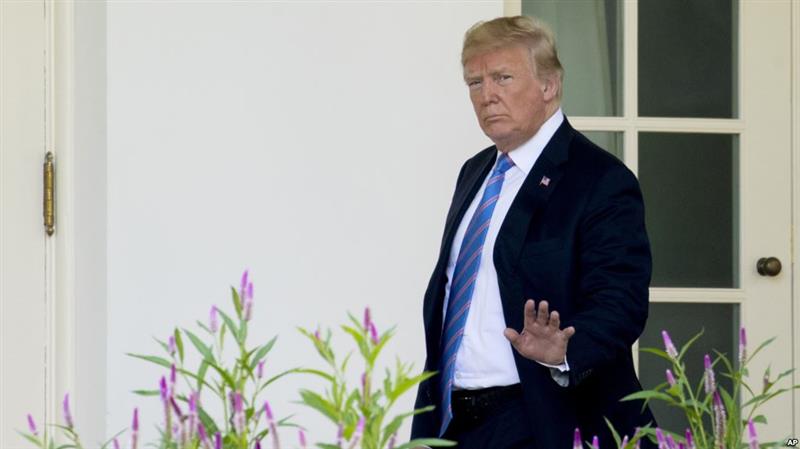 川普总统走向白宫西厢时向媒体挥手。(2018年7月18日)
