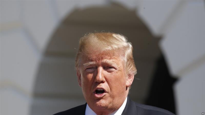 美国总统川普在白宫南草坪(2018年8月22日)