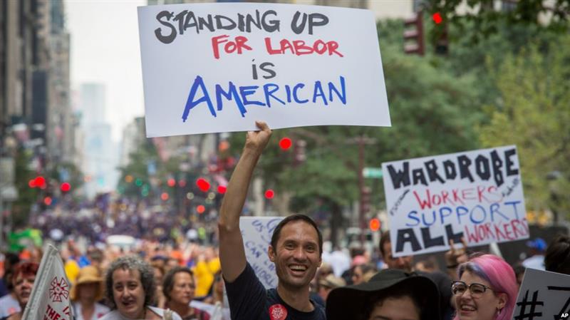 服装工会成员参加纽约市的年度劳工节游行。(资料照)