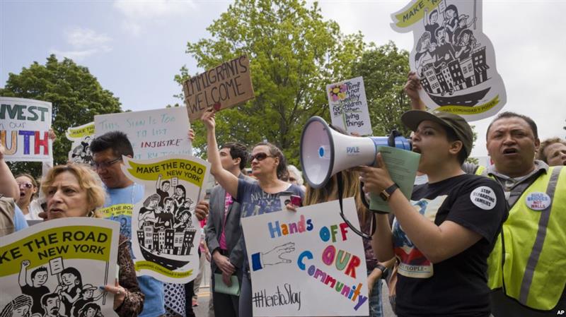 抗议者聚集在莫瑞利国土安全中心。2018年5月22日。