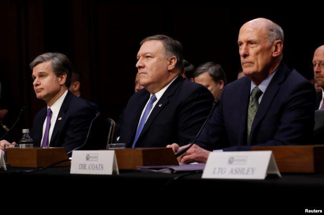 在参议院今年2月的一个听证会上,美国联邦调查局局长克里斯托弗·雷(Christopher Wray)等人作证。