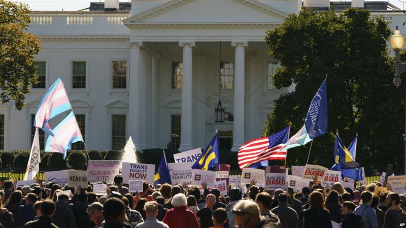 2018年10月22日,美国国家跨性别平等中心和人权运动组织在华盛顿白宫前举行集会。