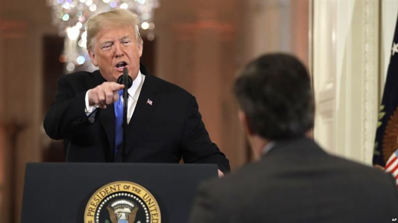 2018年11月7日特朗普总统在华盛顿白宫新闻发布会上面对CNN记者阿科斯塔。