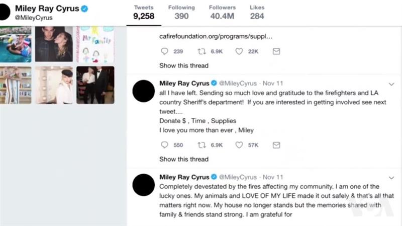 南加州大火,好莱坞名人无家可归 洛杉矶 — 在加利福尼亚州北部和南部,数千名消防员正在与致命的野火搏斗。据报道已有近60人死于火灾。更多的人流离失所。南加州的野火已然席卷洛杉矶附近的许多富裕社区。一些被疏散的居民现在正在返回家园。当中包含许多名人,他们在社交媒体上发表他们的想法和经历。 名人到推特分享他们的经验。演员杰拉德·巴特勒(Gerard Butler)发布的视频展示了野火对他的社区造成的破坏。 他说:“看看这个,它就像一个战场,令人心碎。” 这是巴特勒在马里布的家。他不是这唯一受影响的名人。 麦莉·赛勒斯(Miley Cyrus)也失去了她位于马里布的家。在推特上,她写道:“我的房子不在了,但与家人和朋友分享的记忆却会永存于心。” 加州野火还迫使女演员艾莉莎·米兰诺(Alyssa Milano)和导演吉尔莫·德尔·托罗(Guillermo del Toro)撤离。 德尔托罗还算幸运,他在推特上说,“今早他们告诉我,我的住宅似乎还好。只是受到了轻微的烟雾损坏。” 数千名消防英雄被动员起来,遏制熊熊大火。他们见证了这些野火造成的破坏。 加州消防小队长斯科特·吉尔伯特说:“我从事这项工作已经31年了,大概在过去的五年,也许是七年,每年似乎都变得更糟。这与最近的旱灾有很大关系而且旱灾还在继续。干旱使很多植被死亡,而死亡的植被非常易燃。” 这些条件加上干燥的天气以及大风使得这些野火极具破坏性。