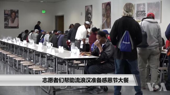 志愿者们帮助无家可归者准备感恩节大餐 洛杉矶 — 志愿者们一直在为洛杉矶贫民窟的感恩节假期做准备。在洛杉矶市中心,数千名无家可归的人住在公园和帐篷里。 美国之音记者奥苏利文走进厨房,采访了正在厨房里忙碌的志愿者们。 这是一个残酷的现实,无家可归的人露宿街头。 这个大厨房可以为数千人准备饭食,今天的志愿者们是来自金融服务机构富国银行(Wells Fargo)的员工。 他们从基督教慈善组织洛杉矶传教会的厨房员工那里得到了一些建议。 富国银行员工志愿者说:“这是我的第一次。我不知道这是不是最好的方法。” 派做好之后要储存起来,在感恩节当天的晚餐前进行烘烤。 厨师吉萨·马修斯说:“我们正在准备感恩节大餐。今天我们要做红薯派。我们自己动手做外皮,还有馅料。” 这600个派是为4000人准备的。这是供他们吃完火鸡和其它节日菜肴后享用的甜点。 厨师埃里克·格兰特说:“在这里,我们正在做玉米面包的馅料。” 这位志愿者很高兴她的公司能够参与帮助志愿者项目。 志愿者朱丽叶·朱说:“我们来这里支援社区,同时能够得到与他人合作和帮助他人的机会。我今天很高兴来到这里。” 这位全职银行职员现在是兼职厨房工人,他也乐在其中。 志愿者杰伊·洪说:“我们应该做出回报,对吧?是的,这太棒了。我很高兴我们能这么做。” 监管厨房的厨师理解这些流浪者。他自己也曾流落街头五年之久。 厨师埃里克·格兰特说:“那时我无家可归,房市崩盘,发生了很多事情。我离了婚,做了一些糟糕的决定。” 他得到了帮助,现在他正在帮助别人,让他们吃上一顿热饭,帮助他们改变生活。人们每天都需要帮助,包括感恩节。