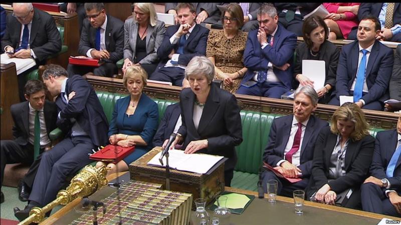 英国首相特蕾莎·梅在英国伦敦市中心的下议院谈论脱欧协议。(2018年11月15日)