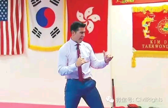 沃特斯在报道中国城节目中表演空手道。 网络图片