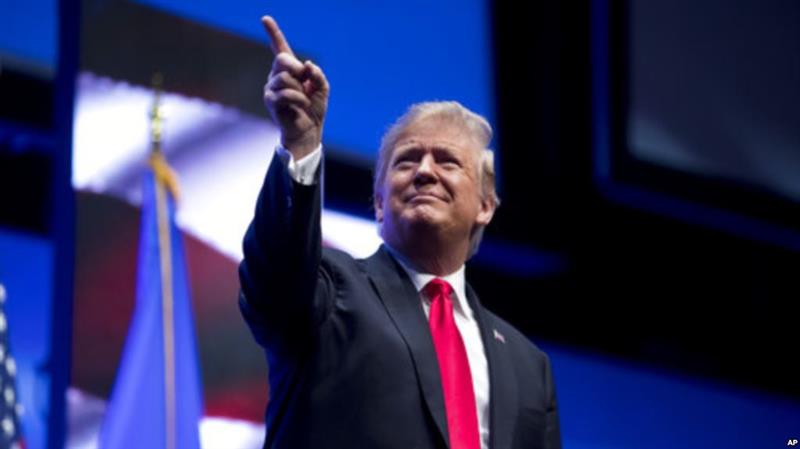 特朗普在新奥尔良举行的农场主大会上发表讲话前指向观众。(2019年1月14日)