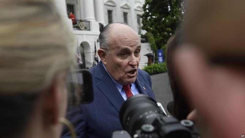 特朗普总统的律师朱利安尼在白宫南草坪向记者讲话,2018年5月30日。