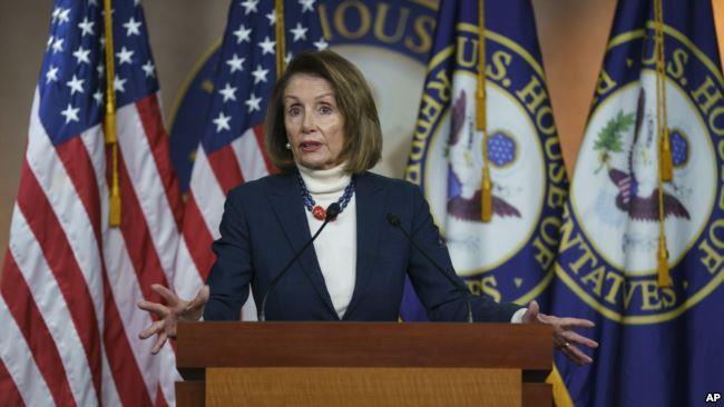 众议院议长佩洛西在国会山举行记者会。(2019年1月17日)