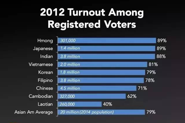 亚裔中人口排名第一的华裔,已登记选民的投票率倒数第三