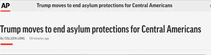 特朗普政府于周一(15日)采取行动,终止对大多数中美洲移民的庇护保护。