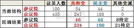值得注意的是,11月8日除总统大选外,参众两院也将再次洗牌。当前两院中共和党均占据多数。从当前的民调结果来看,参议院两党竞争形势焦灼,而众议院将很可能仍由共和党控制。