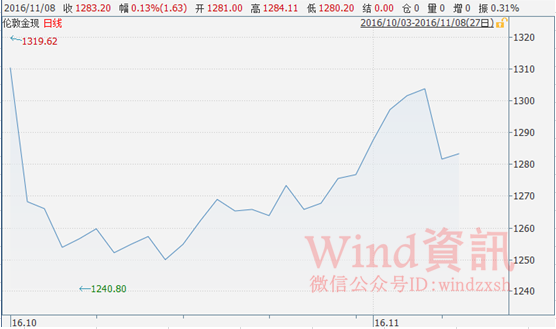 周二欧市早盘,伦敦现货黄金报1283.2美元/盎司,本周以来下跌1.6%。随着“邮件门”恐慌消散,金价也从1300美元高位回落。