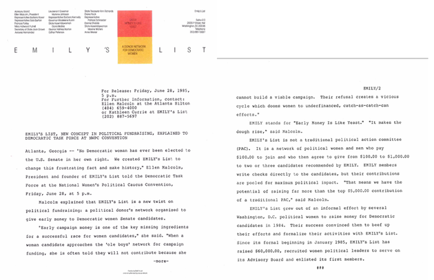 Malcolm, now 69, and a few friends got together in 1985 to figure out how to get more women into office. They saw a chance to harness the collective power of women, who weren’t big campaign contributors. The plan was to get money to female candidates early in their campaigns ― a way of convincing the old boys’ network that they could be viable and deserving of establishment support.